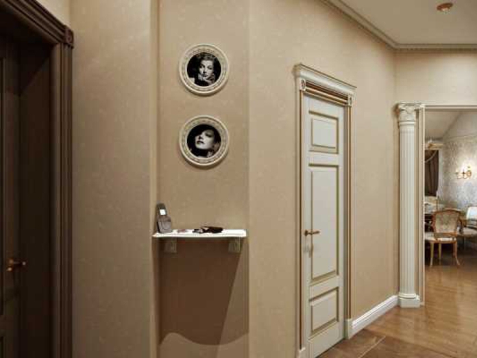 У вас есть немного запаса по ширине и голая стена? Попробуйте оживить ее полкой. Она станет как приятным дополнением к картинной галерее, так и функциональным элементом, на который удобно класть ключи, почту и различные мелочи, которые мы обычно можем забыть, собираясь на работу. Также полка применима как стойка для небольших светильников-ночников, позволяющих спокойно найти нужные вещи, не разбудив ярким светом весь дом.